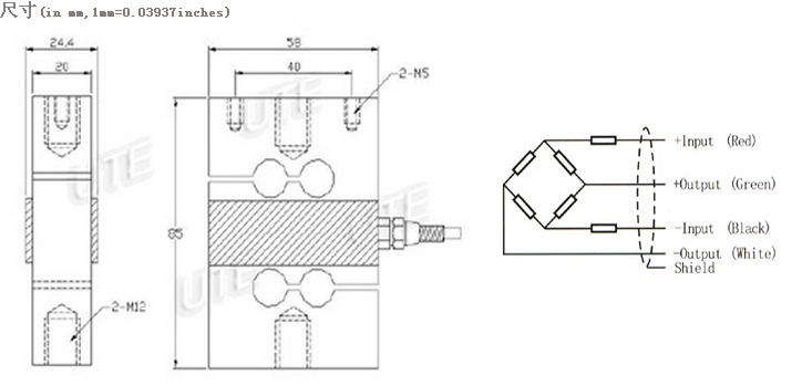 臺灣UTE UNS稱重傳感器尺寸圖: