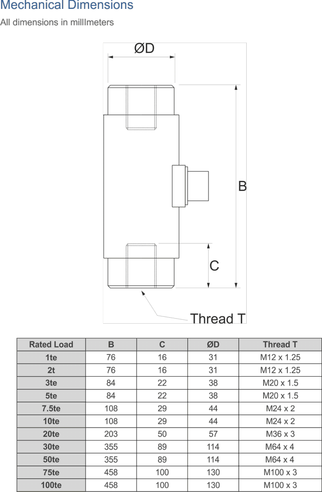 The TCA is constructed from stainless steel offering excellent corrosion resistance. There is an optional mounting base available, which is required if the load cell is to be used in tension. The mounting base is also constructed from stainless steel.