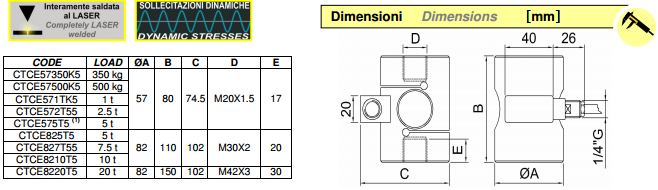 Carichi Nominali da 350kg to 20t