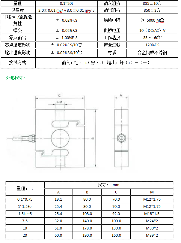 美國AC MS-2稱重傳感器技術(shù)指標: