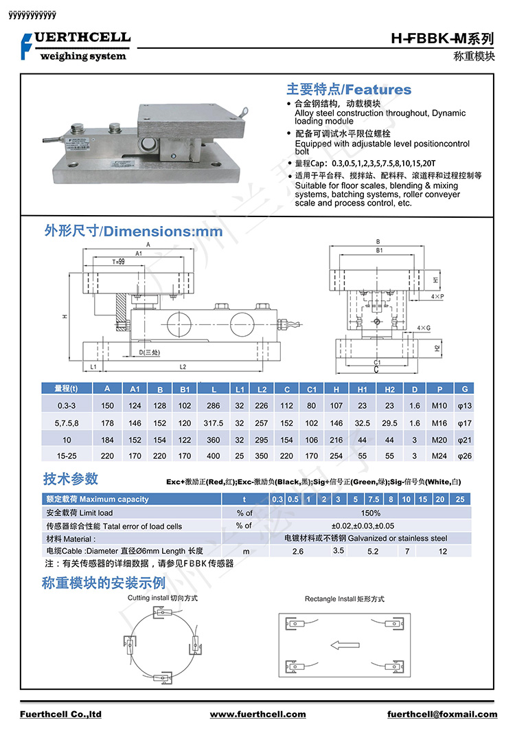 美國FUERTHCELL FBBK-750KG稱重模塊產品參數(shù):