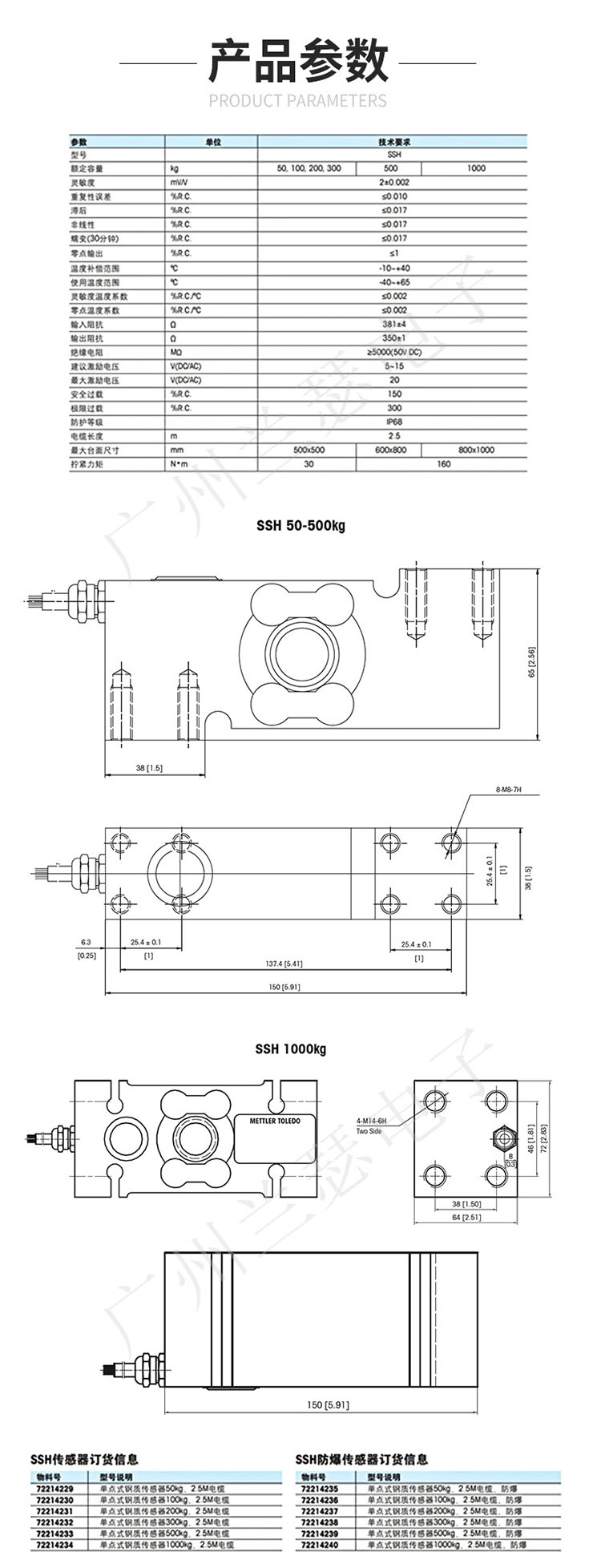 Mettler toledo稱(chēng)重傳感器SSH系列所有型號(hào):